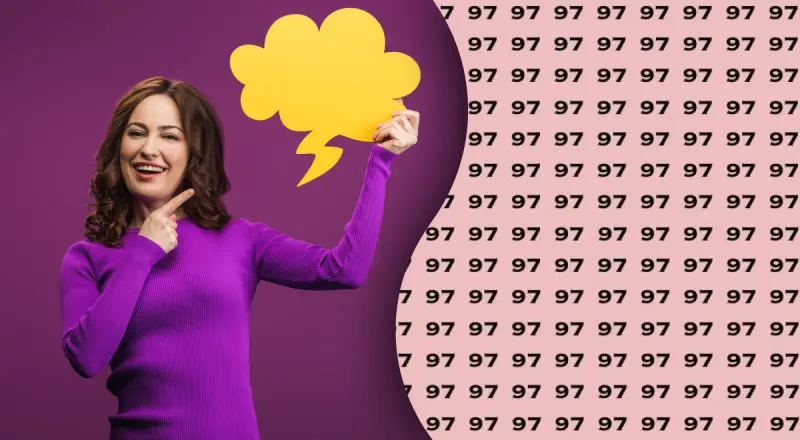 На картинці ми бачимо велику кількість чисел 97, які розташовані у ряди і стовпці. На перший погляд здається, що крім цих чисел більше нічого там не можна побачити. Але це оманливе враження. Десь на малюнку причаїлося число 67, і його потрібно знайти на швидкість.