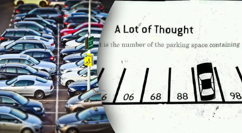 На зображенні - автостоянка на шість місць. На п'яти порожніх місцях написані номери, а на шостому — припаркована машина, що приховує номер. Питання: "Який номер паркувального місця, на якому знаходиться машина?».