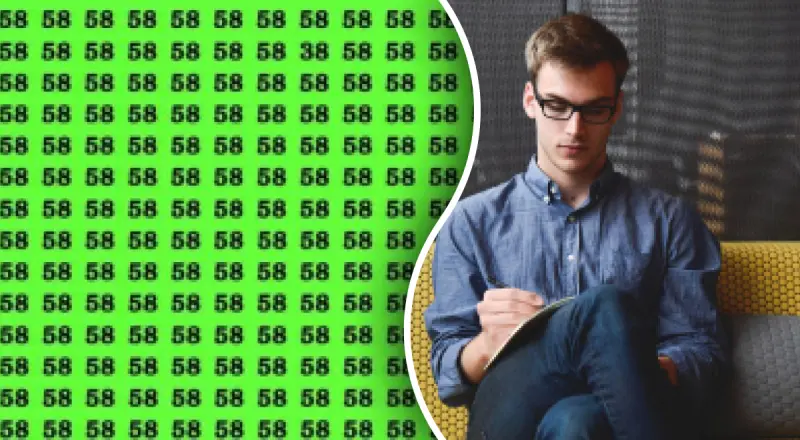 На цій яскравій картинці - безліч цифр. Здається, що там всього лише одне число - 58. Але десь сховалося число 38. Саме його і потрібно знайти. Час на вирішення головоломки обмежений - у вас є всього лише 10 секунд.
