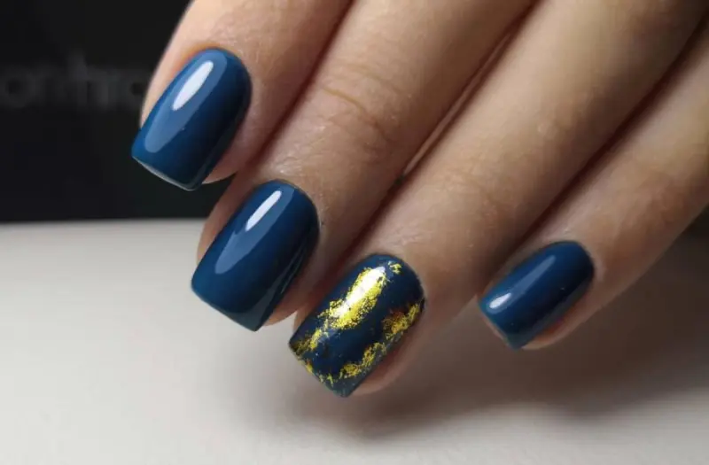 А якщо вас надихають темні відтінки, то зверніть увагу на темно-синій колір, як чорнило – здається, він ось-ось стане чорним. Цей колір настільки багатий, що досить просто пофарбувати нігті та вже нічим не прикрашати їх – осінній манікюр однотонний у тренді.