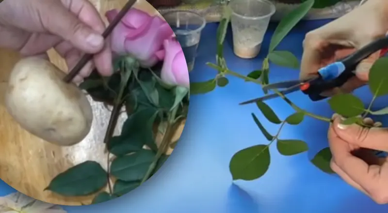Розмноження троянди з використанням картоплі вважається одним з простих методів, особливо для новачків. У цьому випадку живці перед посадкою в землю поміщають у бульбу, яка забезпечує рослини поживними речовинами, такими як крохмаль, вітаміни, фітогормони та волога.