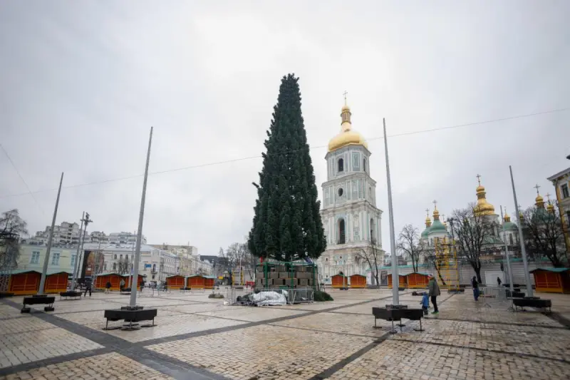 У Києві на Софійській площі в понеділок, 29 листопада, стартувала установка новорічної ялинки.