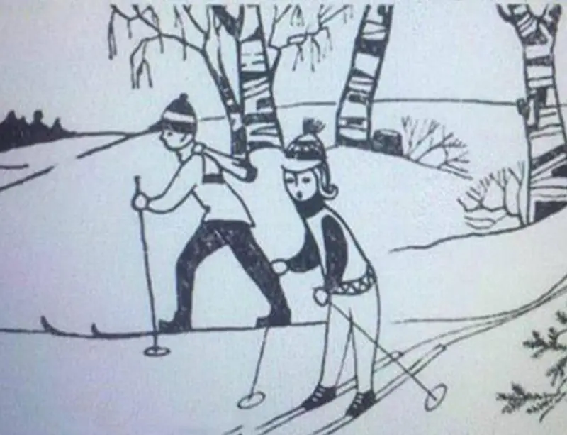 Ми пропонуємо вам розібратися з цією головоломкою. На зображенні є чоловік і жінка, які катаються на лижах по лісу. На картинці сховався зайчик, проте його так просто не помітити.