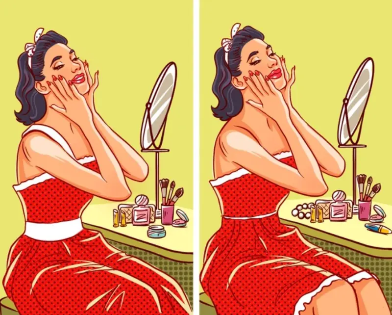 Ми пропонуємо вам розібратися з цією головоломкою. На зображенні ви бачите молоду дівчину, яка сидить перед дзеркалом і доглядає за собою.