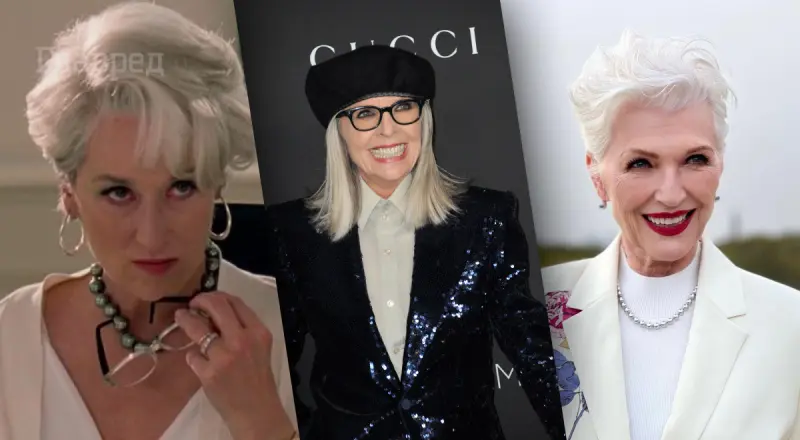 Сивина в тренді, доводить Меріл Стріп - легенда Голлівуду, яку вважають однією з найвидатніших акторок нашого часу навіть самі єхидні кінокритики і таблоїди. Вона сама - Голлівуд, тому правила краси диктує вона. Принаймні в тому, що стосується особисто її зовнішності. У повсякденному житті, на сцені або червоній доріжці артистка може собі дозволити вийти без макіяжу і зі сріблом у волоссі. Чого тільки вартий її образ сивочолої Міранди Прістлі у фільмі "Диявол носить Prada".