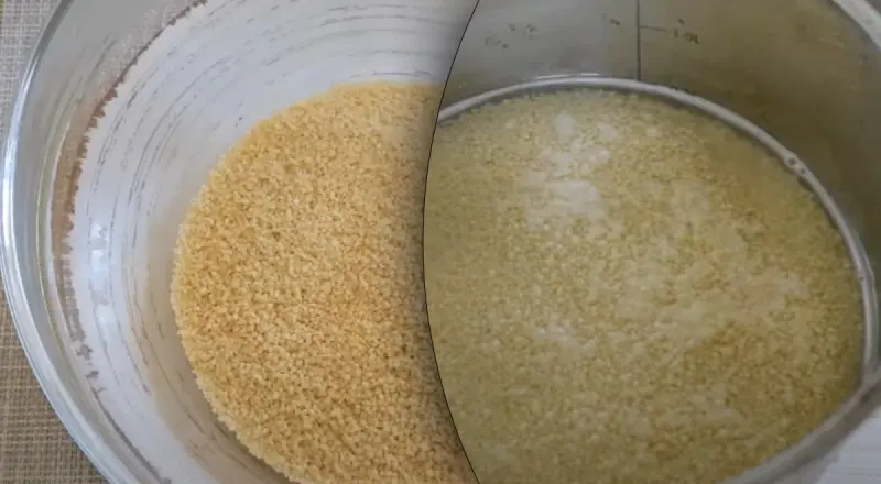 Після того як ви заллєте кускус киплячою водою, накрийте його кришкою і дайте настоятися протягом 5-7 хвилин. В цей час кускус набрякне і стане м'яким. Потім виделкою розривайте грудочки і перемішуйте, щоб вийшла розсипчаста структура.