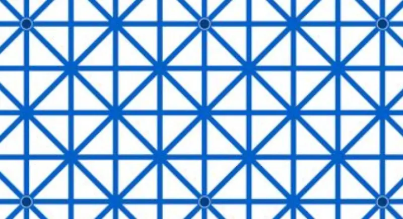Як пише The Mirror, ця запаморочлива ілюзія показує кілька перехресних синіх ліній з дев'ятьма темнішими синіми крапками, розкиданими скрізь, і це зовсім не те, що здається на перший погляд.
