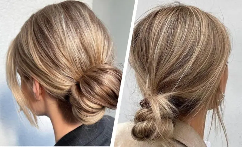 Низький пучок на середнє волосся теж роблять за такою ж схемою - волосся потрібно зібрати ззаду і зробити пучок. При цьому врахуйте, що в сезоні осінь 2022 на особливу увагу заслуговує акуратний пучок і максимально гладке волосся. Але якщо вам до душі невимушений стиль, то можете зробити недбалий пучок.