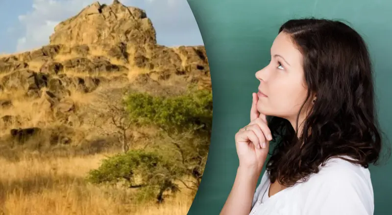 Ми бачимо пейзаж зі скелею, камінням і кущами. На перший погляд здається, що цей краєвид зовсім позбавлений уваги диких тварин, адже там не видніється жодної живої істоти. Але все насправді зовсім не так. Десь там причаївся гепард, який спостерігає за вами зі своєї схованки.